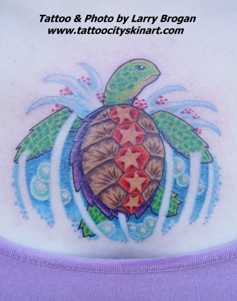 Comments: The lovely girl who sports this tattoo in the center of her chest sat like a champ. For some reason I have been putting lots of bubbles in girls tattoos lately but they seem to be liking it.